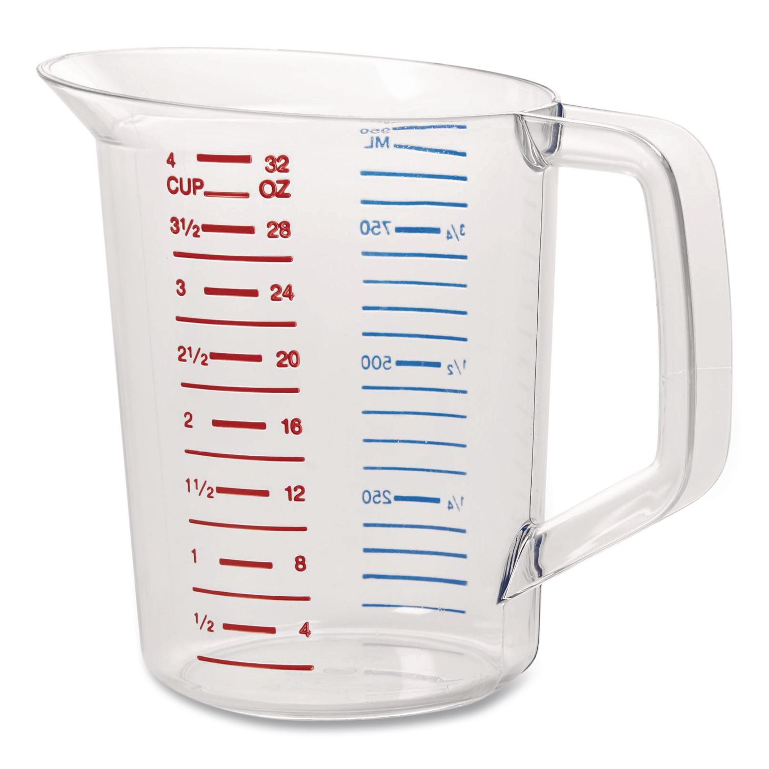 Measuring cup is constructed of break-resistant and durable crystal-clear material. Rubbermaid measuring cups feature large, easy-to-read measurements in high-contrast red or blue. Safe for use with temperatures ranging from -40-degree F and 212-degree F. NSF certified and commercial dishwasher safe.